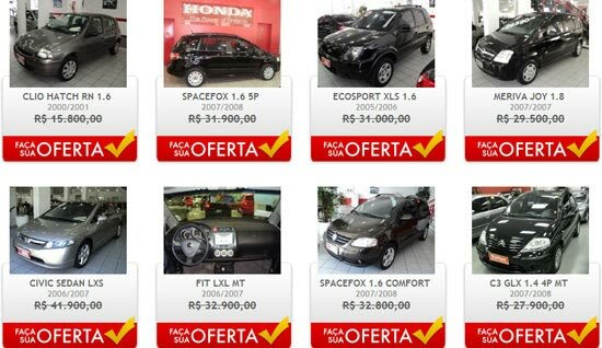 - Бразильское Daitan (агентство по продаже подержанных автомобилей Honda) дало пользователям возможность предлагать цены на автомобили на странице «Fa?a sua Oferta» («Сделай предложение»).