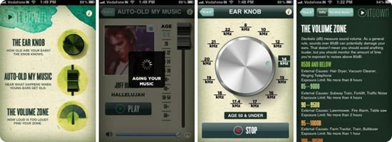 - Приложение Play It Down позволяет пользователям проверить слух. Приложение предлагает несколько интерактивных функций, включая «Ручку уха», которая позволяет друзьям сравнить, кто из них слышит самые высокие частоты, и «Зону громкости», которая измеряет громкость звука в децибелах.
