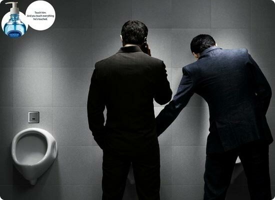 - Запущенная в марте 2011 года рекламная компания дезинфицирующего средства для рук Sanitol индийского бренда предметов личной гигиены Cardiograph Corporation показывает, как человек трогает интимную область другого человека, а другой человек сует палец в нос коллеге. Реклама намекает на разновидность микробов, которая может обитать на руках потребителей, доказывая необходимость использования дезинфицирующего средства для поддержания чистоты.