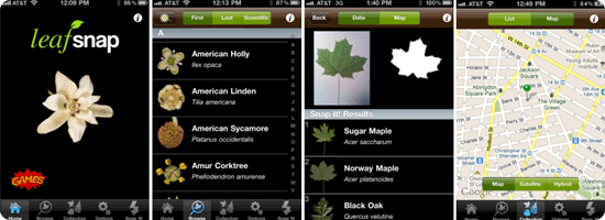 - leafsnap – это бесплатное приложение, использующее технологию визуального распознавания и позволяющее пользователям определять различные виды деревьев по фотографиям их листьев.