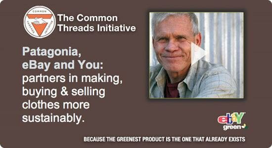 - Уже упомянутая в разделе, посвященном ECO-CYCOLOGY, инициатива Common Threads Initiative компании Patagonia является хорошим примером для темы ПОВТОРНОЙ ТОРГОВЛИ. Американский бренд верхней одежды в партнерстве с eBay запустил в сентябре 2011 года официальную торговую площадку, на которой потребители могли купить и продать бывшие в употреблении товары.